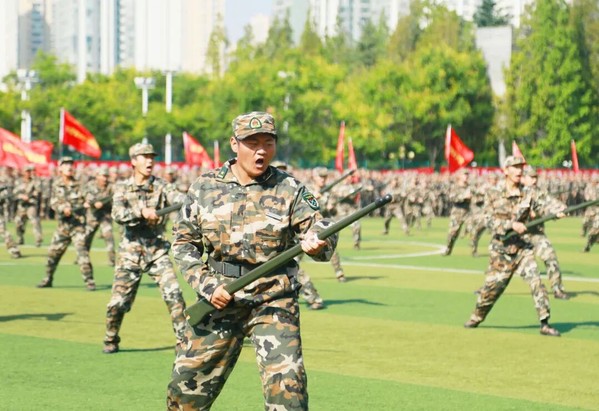 随后进行的军事科目汇报表演精彩纷呈,刺杀操凌厉果断、匕首操敏捷迅猛、应急棍虎虎生风、信号旗变幻精准,同学们整齐划一、刚劲有力的表演赢得现场阵阵掌声。其中,我营负责刺杀操科目展示,体育场上,化院学子英姿飒爽,一声声“杀”直冲云霄,展现着MK体育25级学子,蓬勃向上的朝气和顽强拼搏的精神。