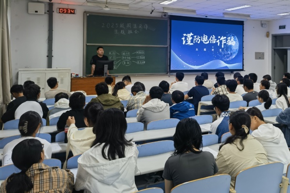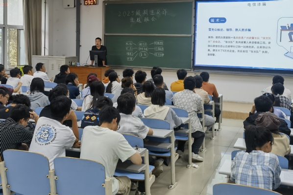为应对近期公司电信诈骗案件频发的严峻形势,切实提升2025级新生的反诈意识与自我保护能力,守护新生财产安全与校园稳定,9月27日上午9点,2025级新生分六组举办了“谨防电信诈骗”主题班会。本次班会由辅导员曹建琳主持,2025级全体新生共同参与。