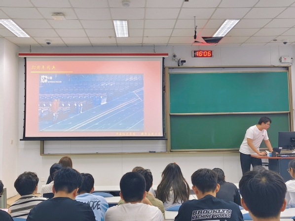 活动在庄严的氛围中拉开帷幕。首先,全体成员共同观看了阅兵视频。整齐划一的方阵、先进精良的武器装备,无一不展现出国家的强大实力和人民军队的威武英姿。同学们的目光紧紧锁定在屏幕上,被那震撼人心的场面所深深吸引,不少同学的眼中闪烁着自豪与激动的光芒。
