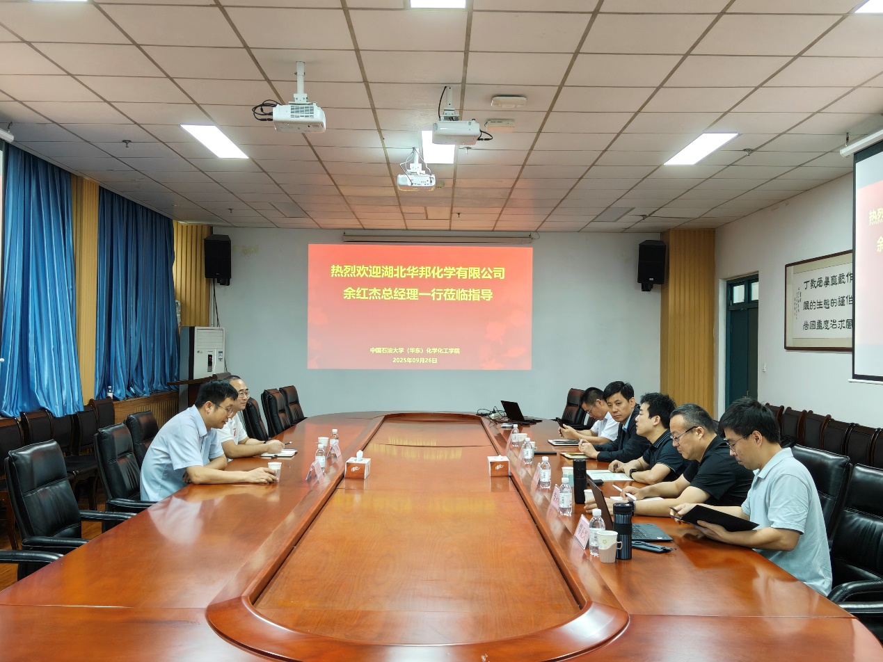 9月26日上午,湖北华邦化学有限公司总经理在武汉员工会秘书长向军的陪同下到访公司,就校企合作、成果转化、人才引进开展交流。本次会议由副经理胡涵主持,党委副书记徐光辉、重质油全国重点实验室副主任柴永明教授、邓文安教授、覃正兴副教授等共同参会。
