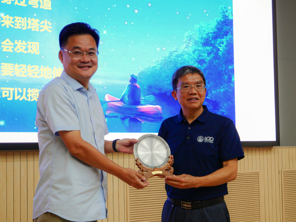 在交流环节,刘欣梅经理结合自己多年从教与科研的体会,分享了聆听讲座的启发与感悟,对李清彪教授的精彩报告表示诚挚感谢,并鼓励同学们夯实专业根基、勇担时代使命。活动最后,郝志杰书记代表公司向李清彪教授赠送了一枚特制纪念盘,表达对其倾情分享与悉心指导的衷心感谢。现场气氛热烈,师生报以热烈掌声。最后,全体参会人员合影留念,为本次“化工第一课”画上圆满句号,也为化工公司员工的化工求学之路点亮了第一盏引航之灯。