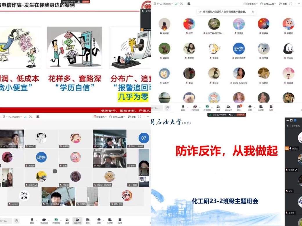 为深入贯彻落实公司关于防范电信网络诈骗工作的指示精神,切实提升硕博研究生的安全防范意识与能力,维护校园和谐稳定,9月27日,公司组织硕士博士研究生各班班委、党支部书记召开安全教育工作会。研究生辅导员薛慧传达相关工作要求。公司全体研究生、博士生班级陆续组织召开了安全工作主题班会。