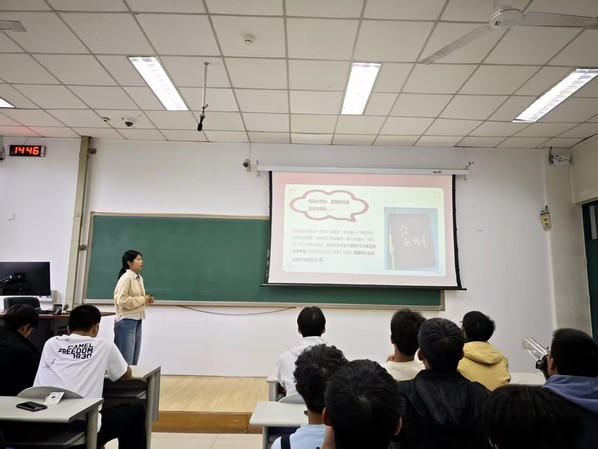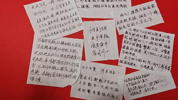 在主持人的讲解下,同学们对爱国精神的内涵有了更进一步的理解。随后,主持人邀请在场每位同学在白纸上写下看法,结合当日所学的爱国精神内涵与个人和集体的紧密联系,谈谈如何将自身目标与班级团结、国家建设需求相结合,在助力班级进步的同时,为国家未来发展贡献自己的一份力量。