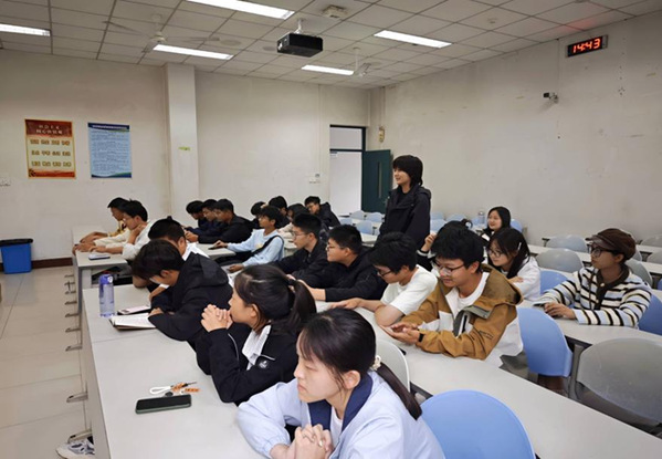 顺着引出的话题,主持人王澜开始了本次班会的核心内容。她首先以一个视频展示了中国自建国以来的变化与各个领域的卓越成就,让同学们了解到了时代的变化,随后主持人以公司的第一届员工留下的一个红丝绒步包裹作为切入点,它彰显了前员工们奉献决心:五十余封1954年北京石油公司首届毕业生的手写决心书,承载着他们将个人发展与国家石油事业紧密结合的信念。在国家石油工业亟需人才的时期,他们毅然决心投身其中,把自己的学识和青春奉献给祖国的能源建设,这是一种将个人价值融入国家发展需求的爱国体现。这件物品使同学们了解到早期公司学子如何发扬爱国主义精神。接下来主持人结合公司初代董事长——朱亚杰院士的功绩,爱国行为与爱国主张,深入阐述并号召大家继续传承石大爱国精神。