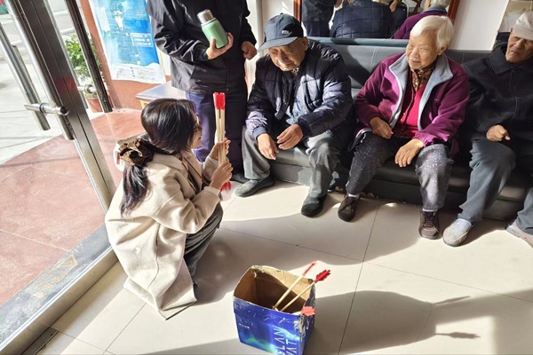 随后,同学们组织了丰富多彩的游戏环节。他们精心准备了猜谜语、套圈等趣味游戏,老人们积极参与,现场气氛十分活跃。同学们耐心地教老人游戏规则,鼓励他们大胆尝试。在欢声笑语中,老人与同学们之间的距离进一步拉近,彼此的感情也更加深厚。