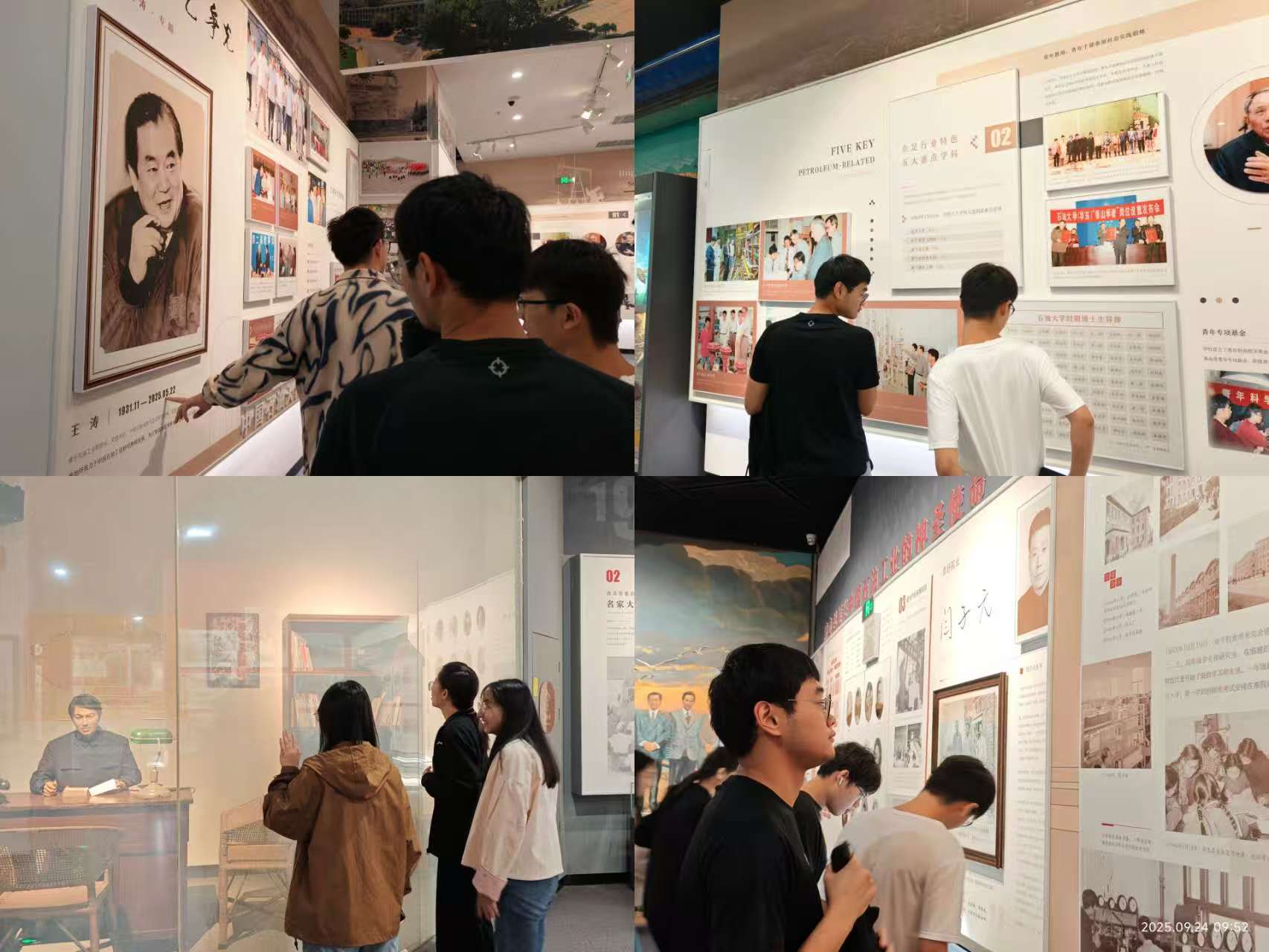 在参观过程中,讲解员系统介绍了公司自北京石油公司时期至今70余年的发展脉络与建设成就。从“家国同心、育才兴邦”的创校初心,到“追求卓越、奋进一流”的当代追求,新生们通过展陈的珍贵照片、文献资料和实物档案,深切感受公司波澜壮阔的发展历程中凝聚的治学精神与家国情怀。一代代石大人艰苦奋斗、能源报国的感人事迹,生动诠释了“惟真惟实”的校训内涵,激发了新生的责任担当意识。