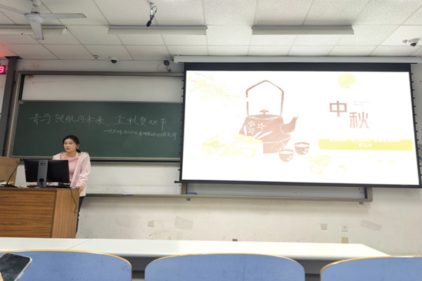 活动伊始,化安2401团支部书记孟昕怡为在场团员带来了一场精彩的文化溯源。她从“中秋”一词的历史渊源讲起,娓娓道来其由古代祭月节演变为万家团圆节的历程;在介绍拜月、赏月、吃月饼等传统习俗时,她引经据典,生动展现了蕴含其中的民族情感与生活美学;当她讲述起“嫦娥奔月”、“吴刚伐桂”等瑰丽神话时,更是在现场营造出浓厚的浪漫想象空间,使大家对这一传统节日的精神内涵有了更深层次的领悟。