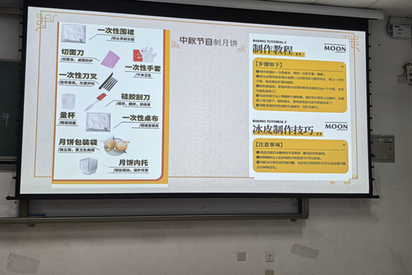 化安2401团支书孟昕怡介绍月饼制作流程 张殿钧摄