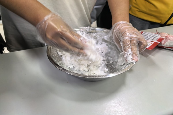 刘义老师在指导同学们和面 冯涛摄