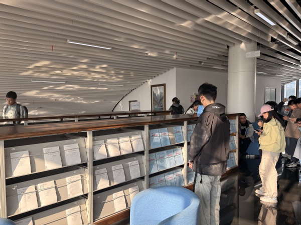 掌握资源获取方法后,老师又带领新生走进图书馆的功能分区,帮助他们规划适配自身需求的学习空间。图书馆不仅是藏书楼,更是多功能的学习交流平台。从适合专注自习的临窗学习区、阶梯学习区,配备专业设备的电子阅览区,到方便集体研讨的开放研讨厢、独立研讨间,再到可沉浸式体验的视听鉴赏区,老师逐一介绍各区域的功能定位与使用场景,让新生能根据“独自刷题”“小组讨论”“查阅电子资料”等不同需求,选择最适合的学习环境,提升学习效率。