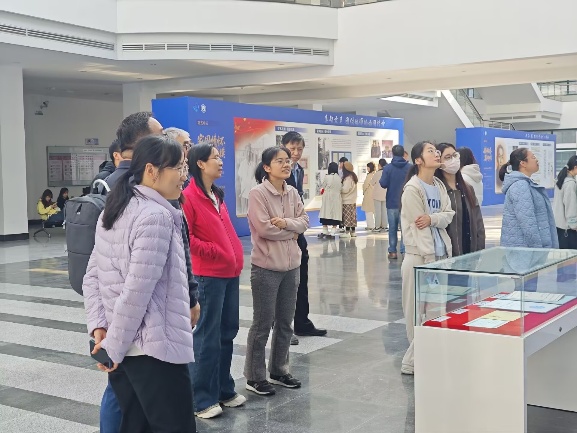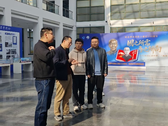 师生认真聆听展板讲解、仔细研读史料,并在展厅内围绕“如何在新时代继承和弘扬科学家精神,将爱国情怀与科研育人紧密结合”展开讨论。教师党支部成员就“将院士精神融入教学、科研与管理”交流心得,强调要以改革创新的姿态,秉持严谨治学、育人为本的理念,在课堂教学、实验研究和管理实践中始终关注国家需求,强化科研使命担当。员工党支部代表指出,曹本熹院士一生心怀国家、脚踏实地,令人深受感动。作为新时代的青年员工,应以院士的报国情怀为指引,在专业学习中不断强化实践能力、增强责任意识,努力成长为服务国家、担当时代重任的科技人才。