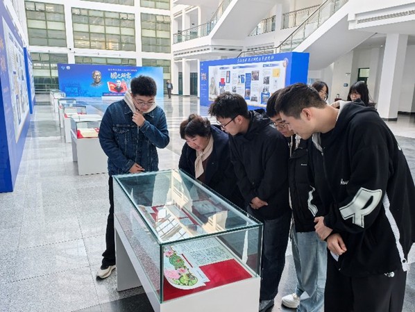 师生党员在展物前驻足交流(摄影李嘉鹏)
