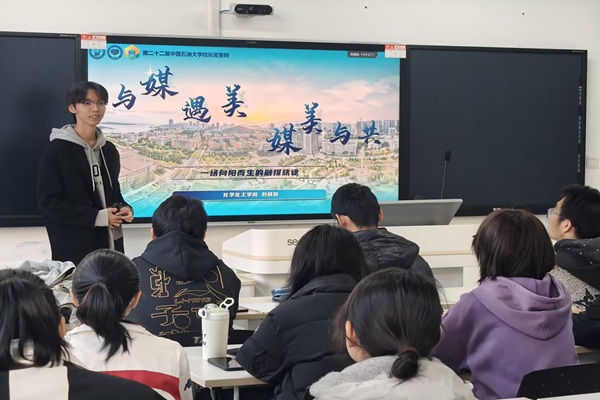 为弘扬新闻理想,启迪青年思维。11月12日下午,化工与制药类2505团支部于综合楼A416开展了“学记者之精神,赋青春之色彩”为主题的团日主题活动。本次活动邀请了原化蕴传媒中心主任,新闻宣传十佳员工干部刘秩伯进行了以“记者与新媒体交流平台”为主题的宣讲。